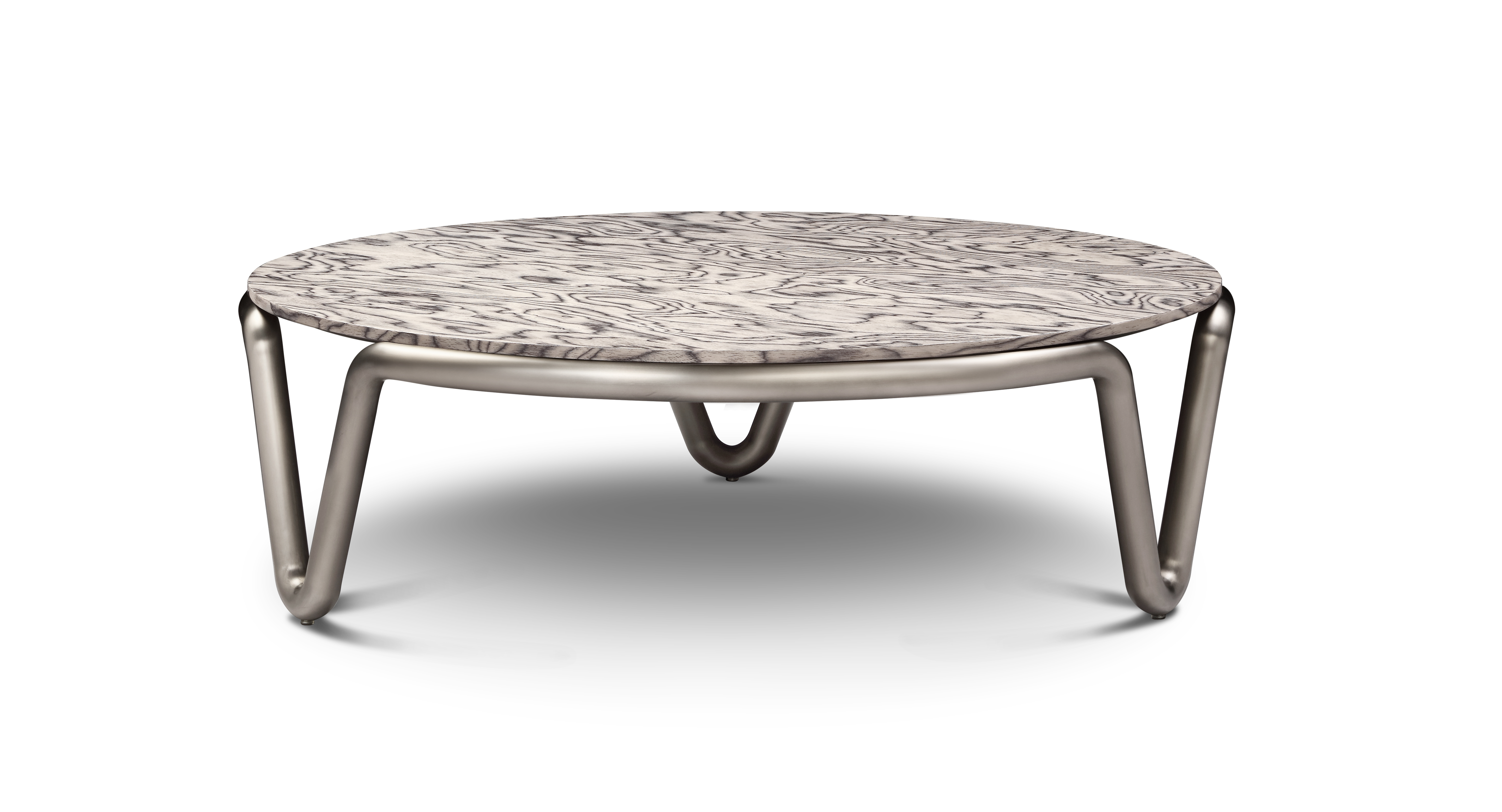 Mesa de centro circular con base metálica gris