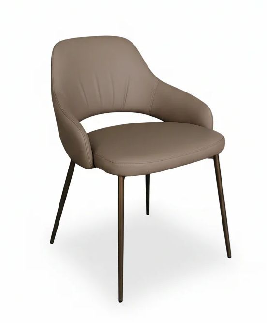 Su respaldo curvado y asiento acolchado se adaptan a ti, ofreciéndote una experiencia de asiento confortable y elegante. Las patas oscuras aportan un contraste sutil que realza su apariencia minimalista y sofisticada.