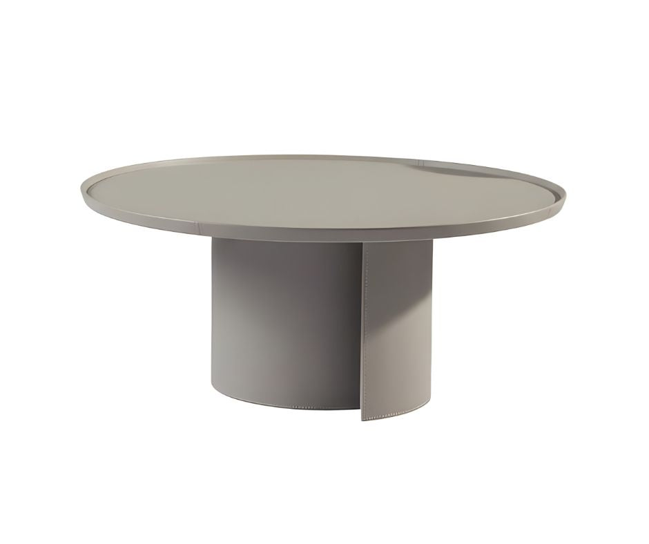Mesa de centro redonda de cuero gris - Vilá Decoración