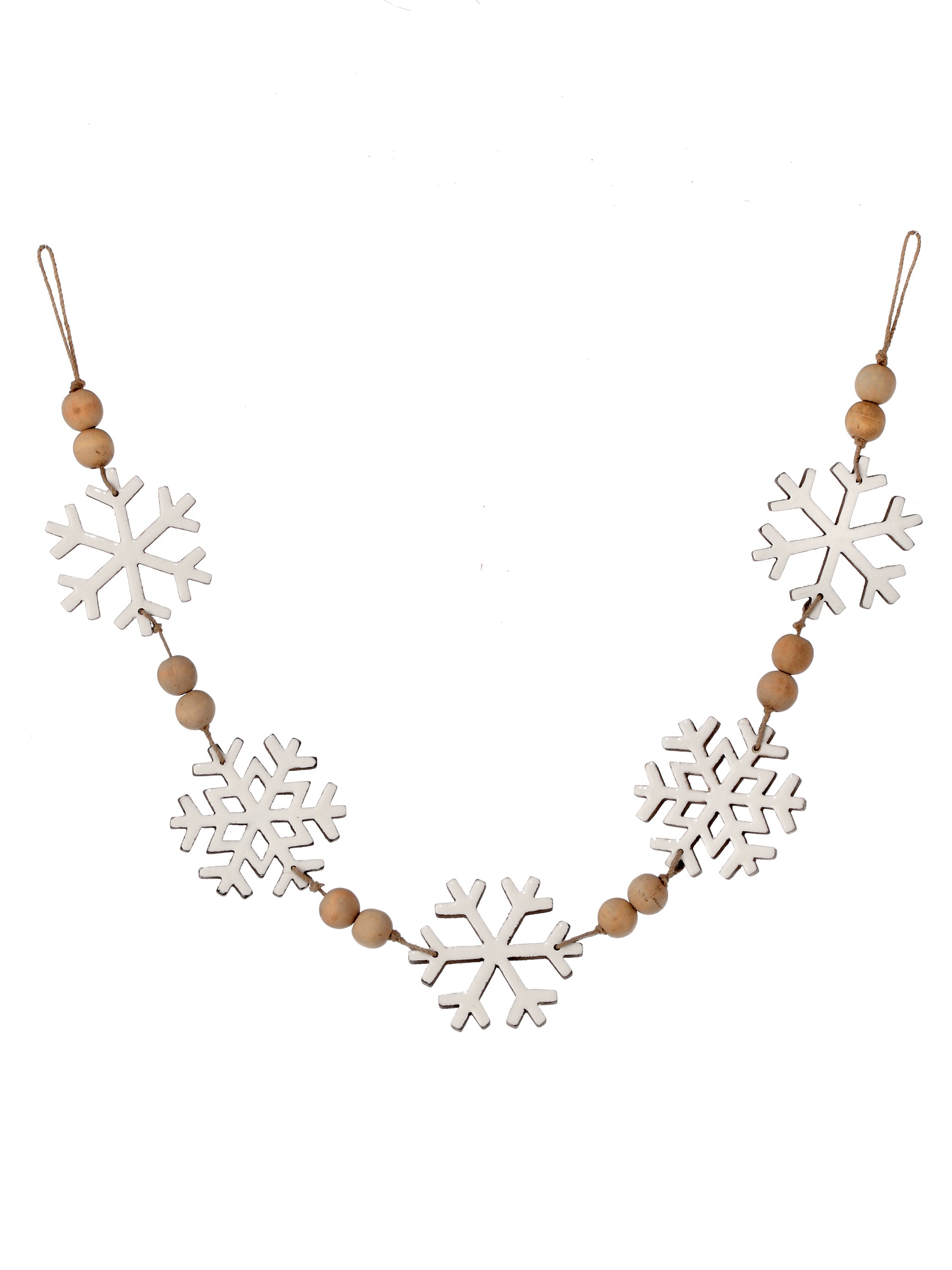 Transforma tu hogar con un toque de magia navideña gracias a esta guirnalda decorativa que combina la pureza del blanco con la calidez natural de la madera. Ideal para darle vida a cualquier espacio durante la temporada festiva, su diseño lineal con copos de nieve y esferas de madera aporta un ambiente acogedor y elegante.