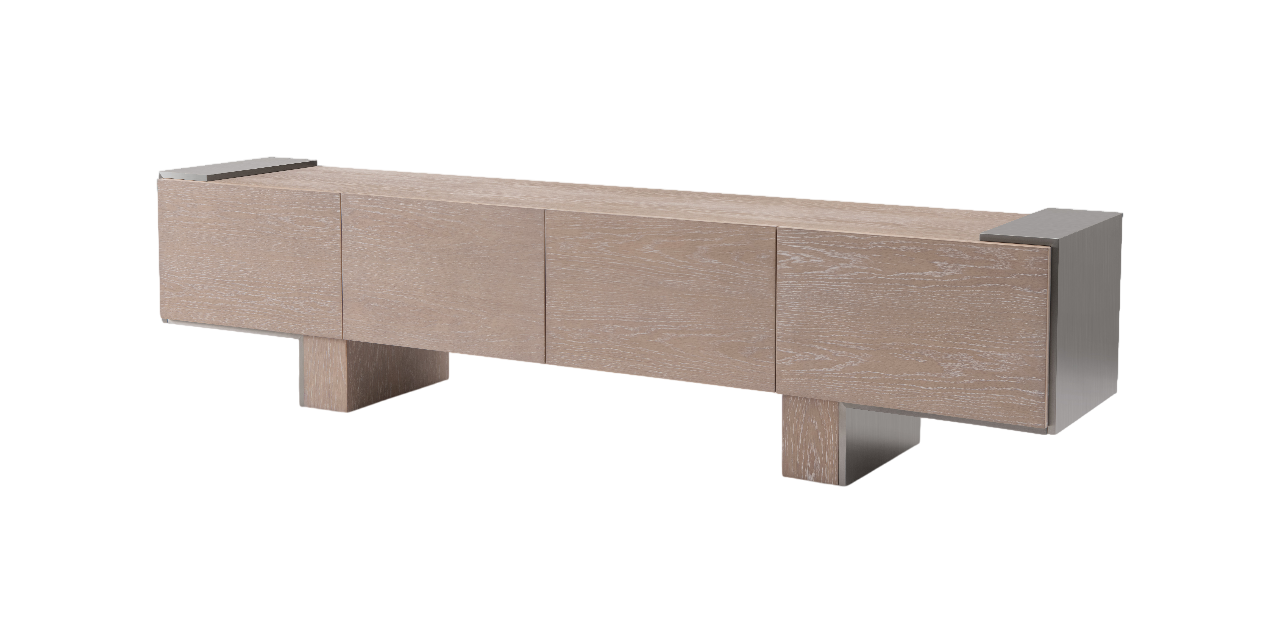 Organiza y realza tus espacios con estilo gracias a este gabinete de almacenamiento con un diseño minimalista y tonos naturales que aportan calidez a cualquier ambiente interior. Su forma rectangular alargada y perfil bajo permite una colocación práctica, ideal para mantener ordenados tus objetos decorativos, equipos electrónicos o elementos de uso diario.