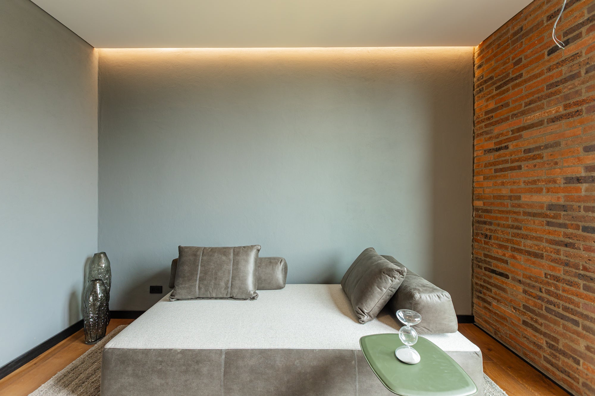 La estructura de madera está cubierta con espuma de poliuretano que, a su vez, está recubierta de tela o cuero según tu elección. Sus respaldos removibles tienen doble función, como espaldar y como almohadón para convertir el diván en cama.