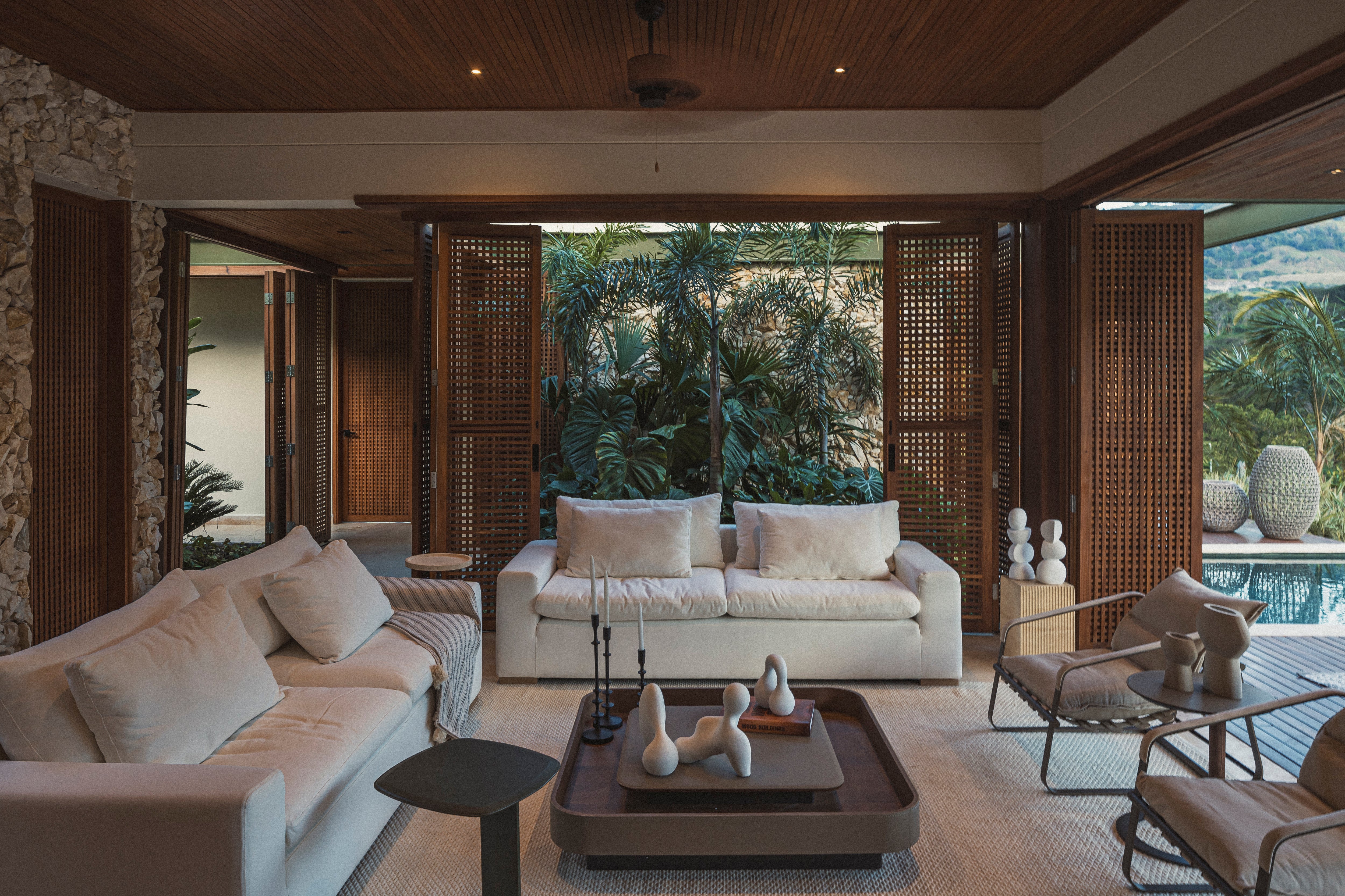 Fabricado con estructura de madera dura de alta resistencia, los cojines del asiento son confeccionados en espuma de poliuretano revestidos en fibra siliconada en poliester, para dar un mayor bienestar.