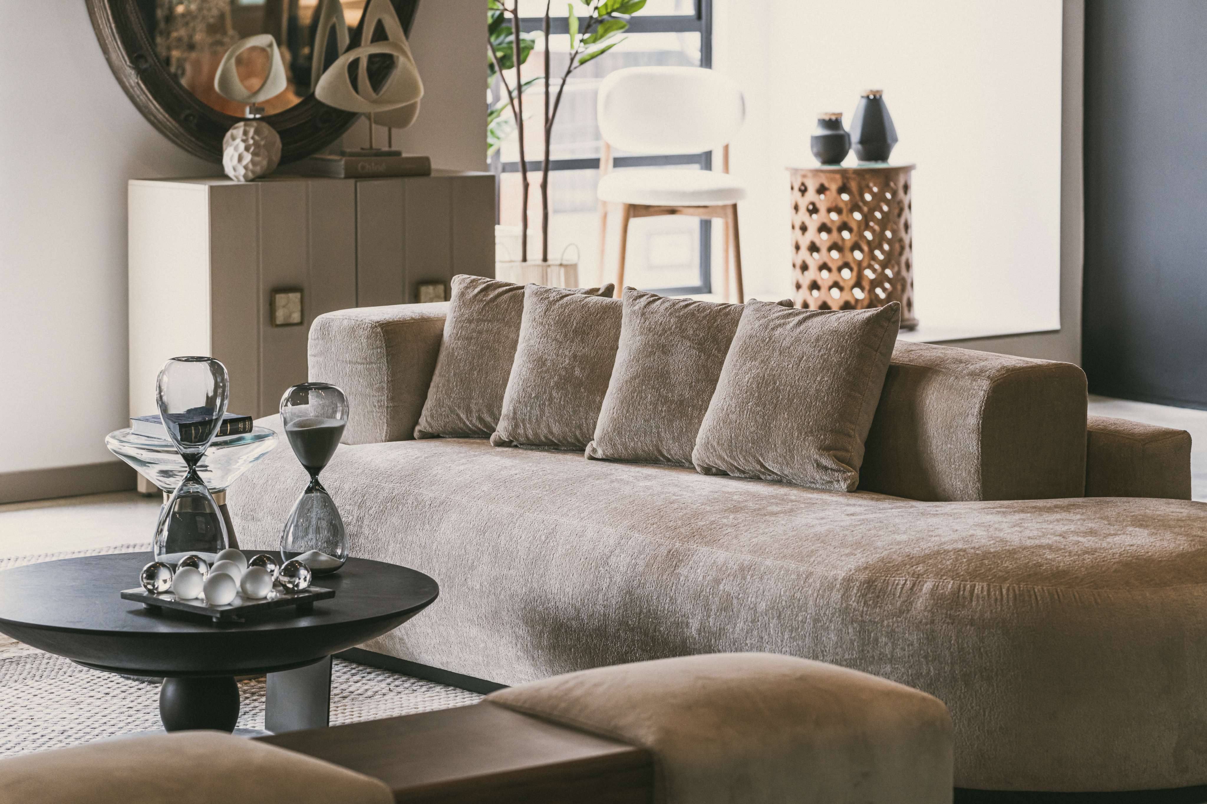 Con un diseño elegante de líneas simples y curvas, que se adapta a la arquitectura de cualquier lugar; cuenta con detalles de tapizado suave, lo que le aporta una textura suave a su diseño general. La tapicería de algodón, fibras naturales y el acolchado del asiento con espuma de alta densidad le aportan la máxima comodidad para relajarse después de un largo día.