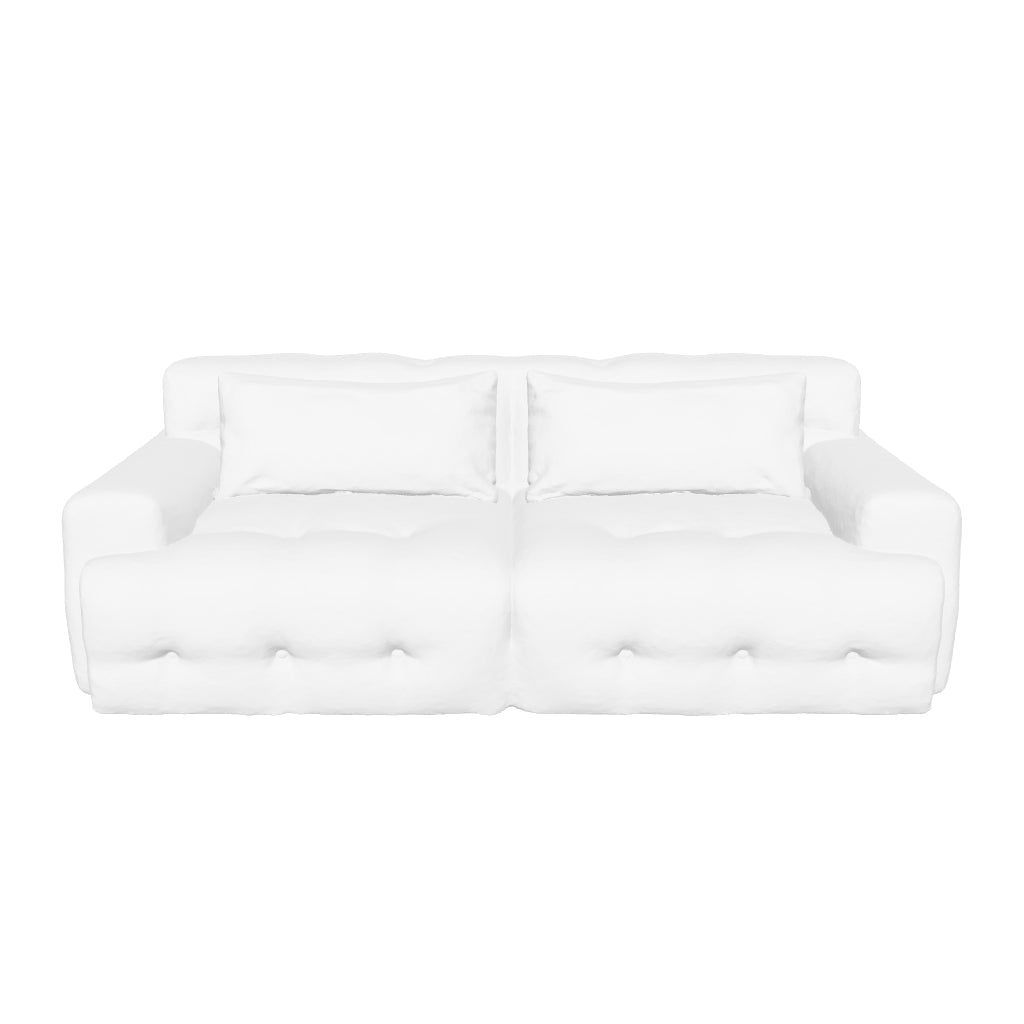 Un sofá “Nube” como su nombre lo indica es un mueble fabricado especialmente para el relax. Este sofá se compone de 2 módulos fusionados, con descansabrazos en sus extremos y está fabricado exclusivamente con una estructura en madera natural y tapizado en un tejido soft, el cual puedes elegir a tu gusto.