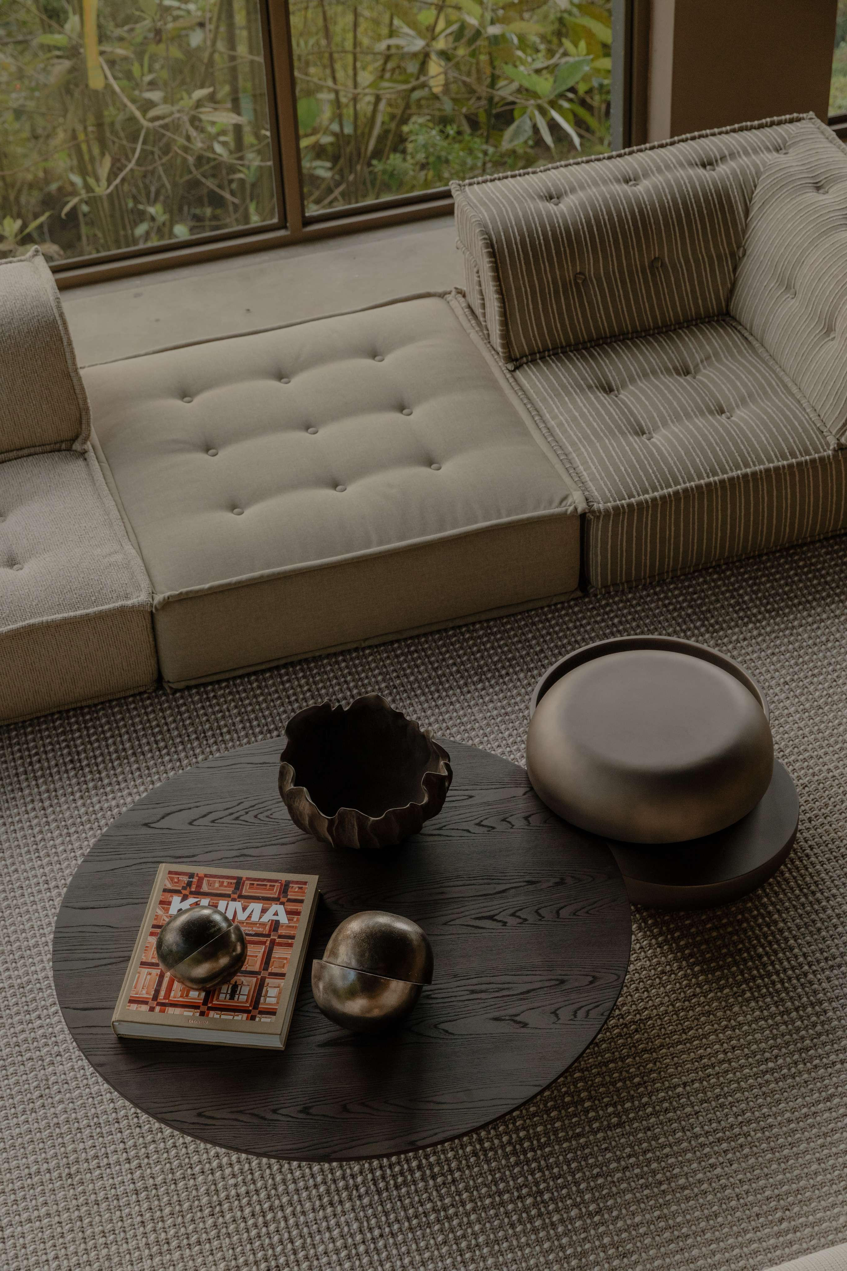 Todos los módulos están confeccionados a mano por nuestros artesanos especializados. En una tapicería estilo capitoné, acolchados y fabricados en fibras siliconadas y espumas de alta densidad.