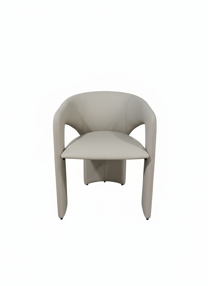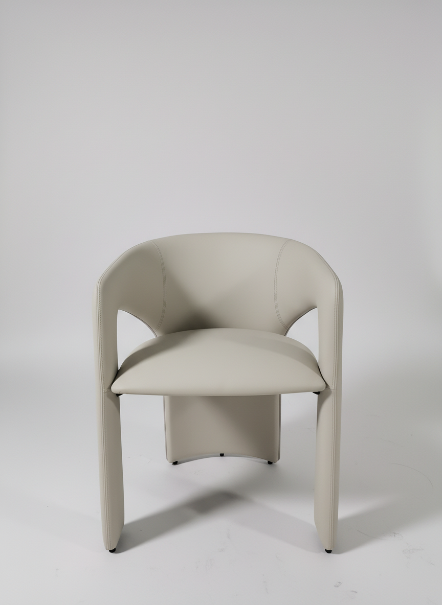 Disfruta de un asiento que combina elegancia y comodidad con esta silla beige de diseño contemporáneo. Su forma curvada y acolchada invita a relajarte y disfrutar en cualquier espacio de comedor o área de descanso.