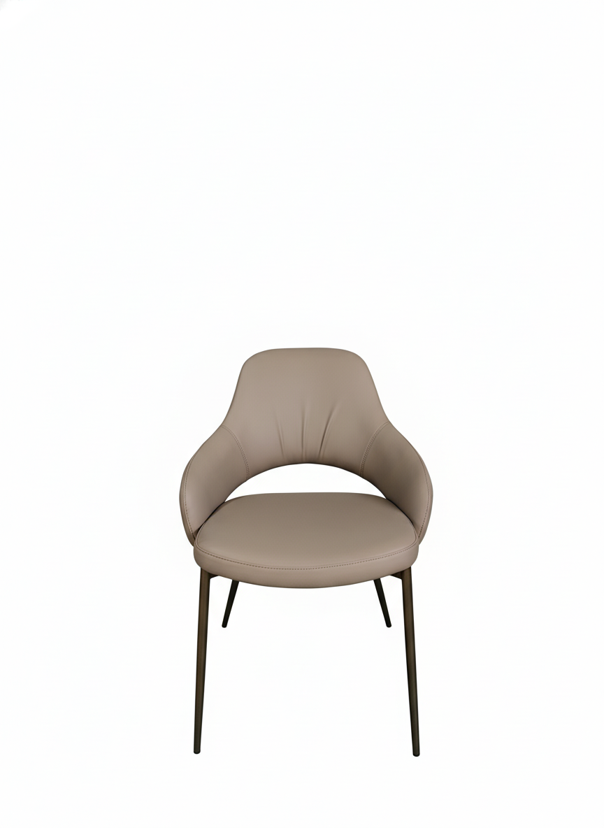 Su respaldo curvado y asiento acolchado se adaptan a ti, ofreciéndote una experiencia de asiento confortable y elegante. Las patas oscuras aportan un contraste sutil que realza su apariencia minimalista y sofisticada.