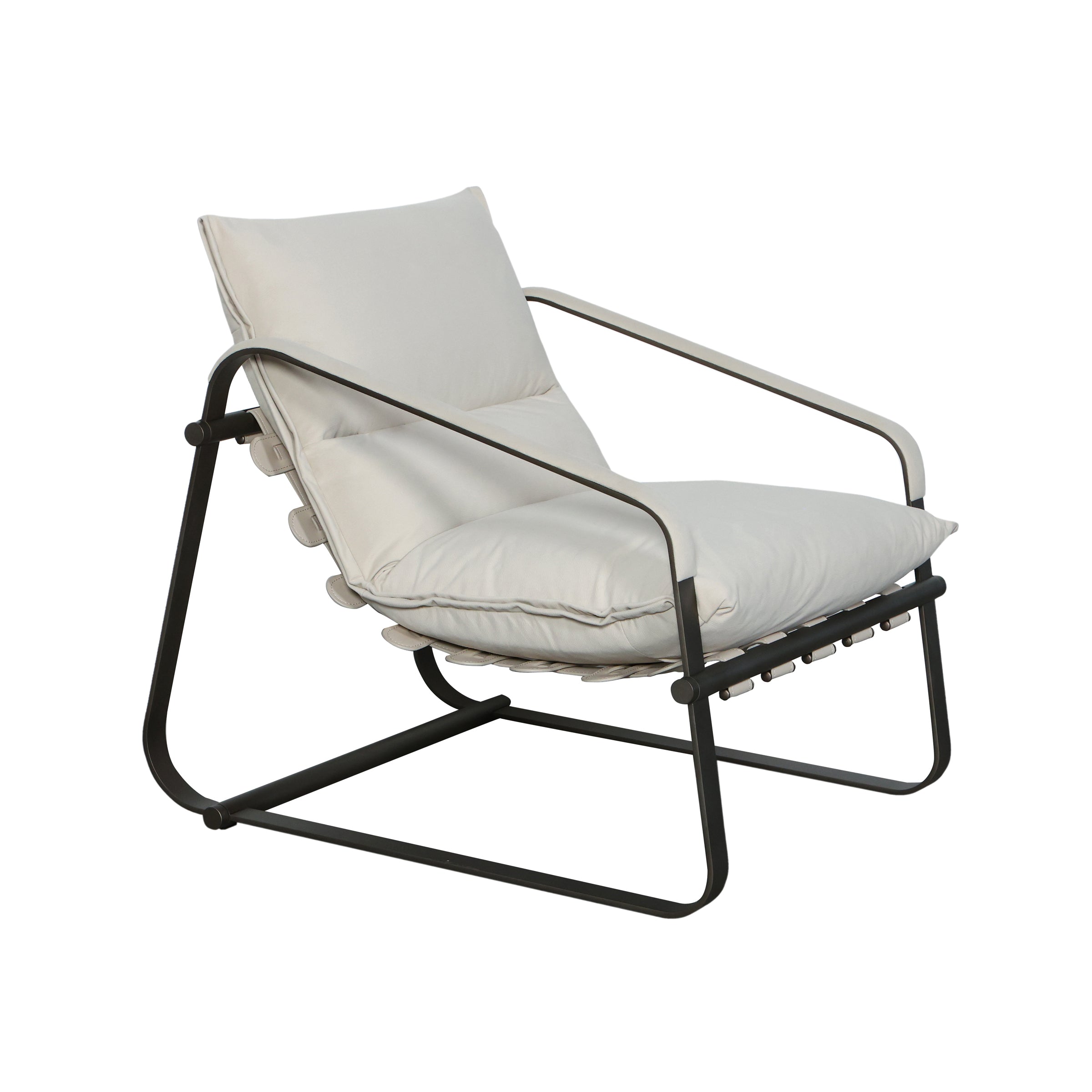 Silla contemporánea de acero inoxidable con cojines blancos acolchados