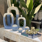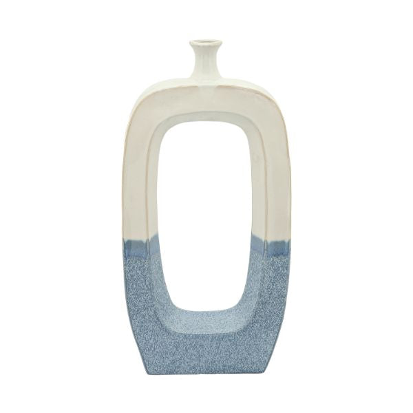 Transforma tus espacios con este elegante jarrón decorativo de cerámica Vilá, en una atractiva combinación bicolor azul suave y blanco. Su diseño orgánico y grande aporta modernidad y fluidez a cualquier ambiente, convirtiéndolo en el centro de atención de tu hogar.