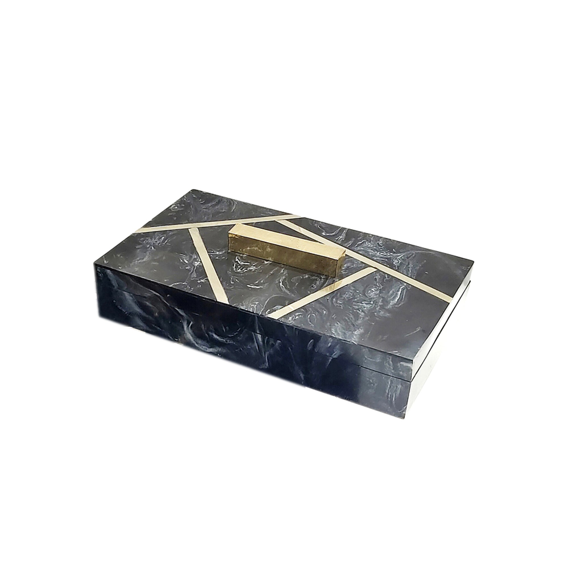 Organiza y decora con estilo gracias a este cofre pequeño de resina gris marmoleado con detalles dorados que aportan un toque elegante a cualquier espacio.