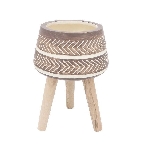 Plantador de madera pequeño con patrón blanco y patas Vilá