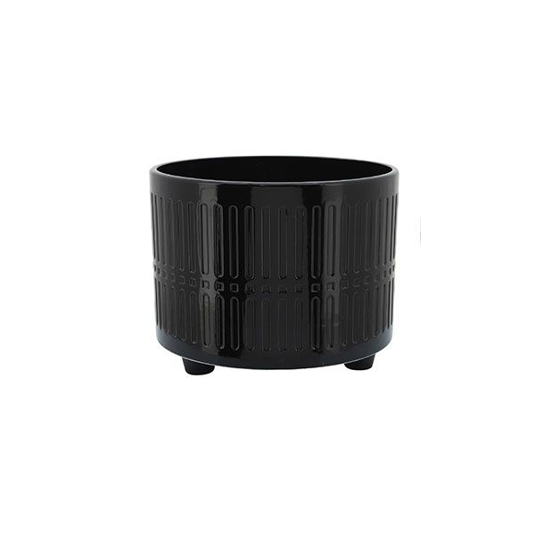 Gracias a sus patas redondeadas elevadas, permite una circulación de aire óptima y un drenaje efectivo, asegurando la salud de tus plantas. El patrón lineal vertical en su superficie añade un detalle visual que aporta carácter sin sobrecargar el diseño.